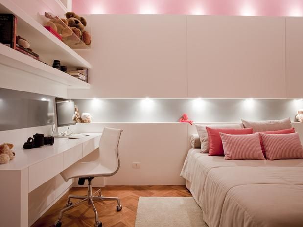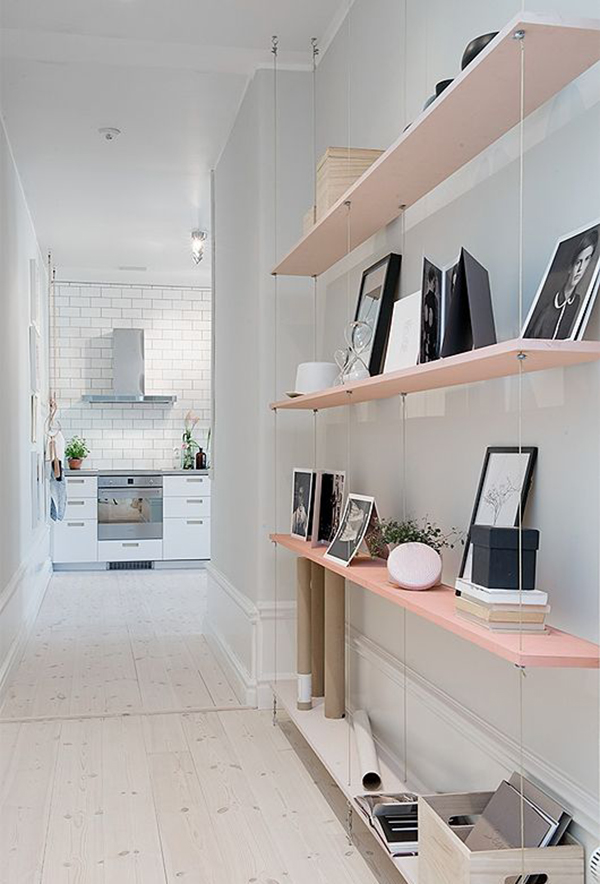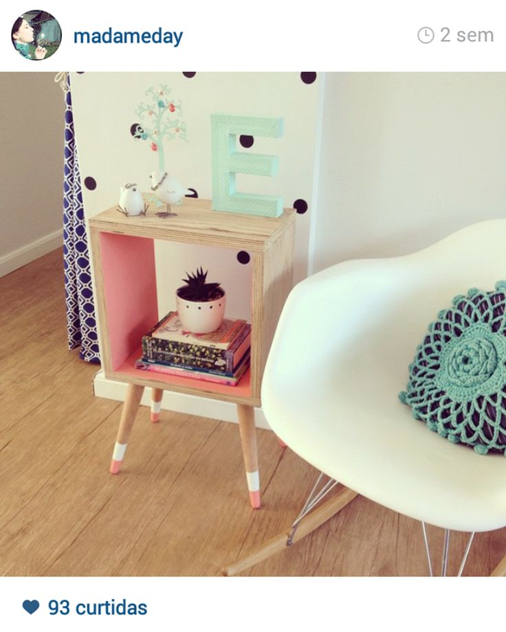 Outra ótima dica é pintar ou utilizar móveis de decoração rosa! Olha essas prateleiras que lindas que ficaram. Pode ser apenas um detalhe, mas chamaria atenção se fossem brancas?