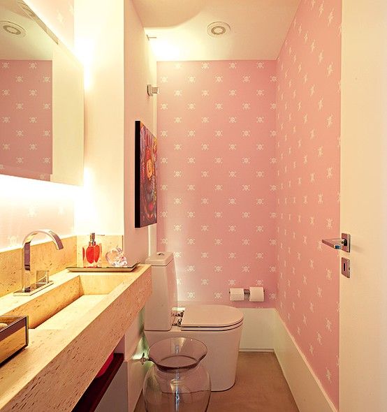 Não tem nada rosa na sua casa? Que tal pintar uma parede, colocar um papel de parede ou até mesmo trocar aqueles azulejos que você já cansou? Detalhe para a porta rosa M-A-R-A!