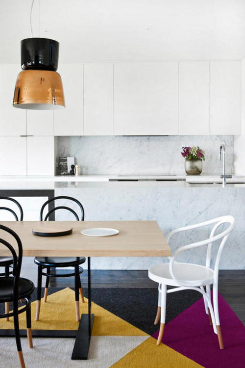 Se a sua decoração for suave e neutra opte por um tapete mais vibrante; Se a decoração for chamativa, opte por um tapete mais neutro;